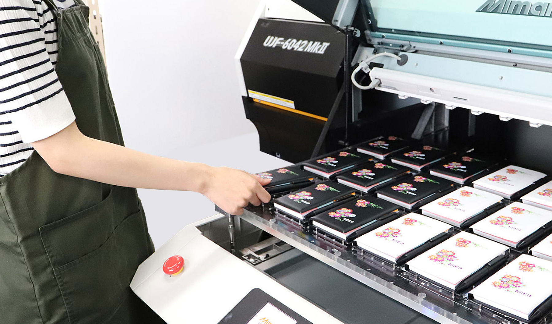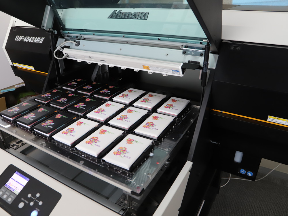 製品への名入れ印刷・名入れ加工を行っています。自社で製品の倉庫と印刷機を保有しているため、迅速かつ柔軟な対応が可能です。