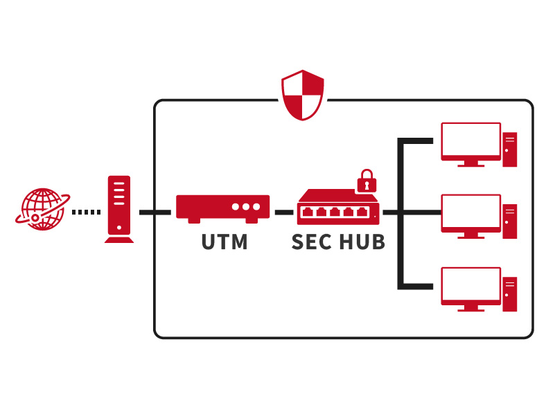 ファイアウォール・UTMの設置、媒体や通信の暗号化、Webサイトへの接続制限、外部記録媒体の利用制限など