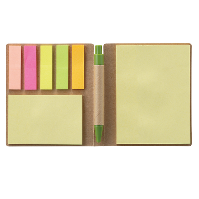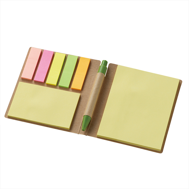 エコメモノートは、3種類の付箋とボールペンがセットされたメモセットです。