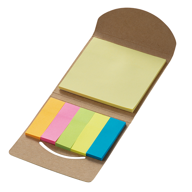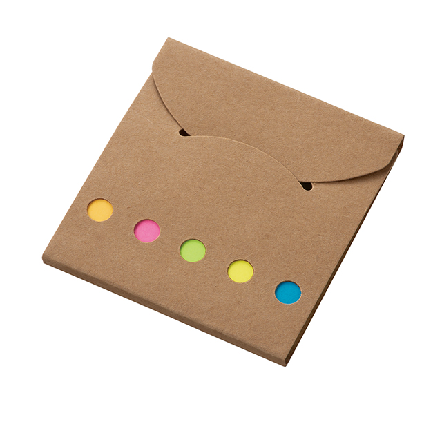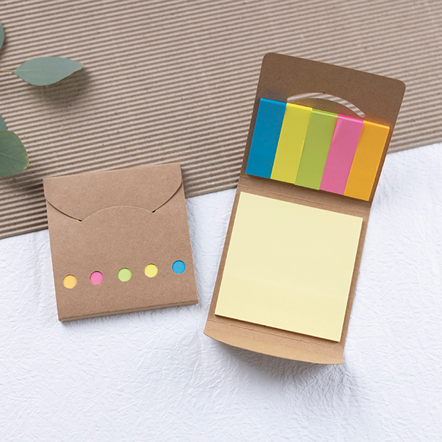 エコ・クラフト付箋メモは、表紙に再生クラフト紙を使用したメモセットです。