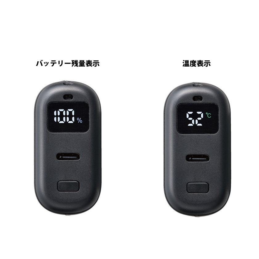 | 備考 | ※5000mAH ※温度切り替え(42℃・47℃・52℃) ※本製品の充電中に、カイロ機能をご使用いただくことはできません。 ※カイロ機能が作動中は、他機器への充電をすることができません。モバイル機器などを充電したい場合は、カイロ機能をオフにしてください。 ※タイマー・オートオフ機能はございませんので、ご使用後は電源の切り忘れにご注意ください。 |