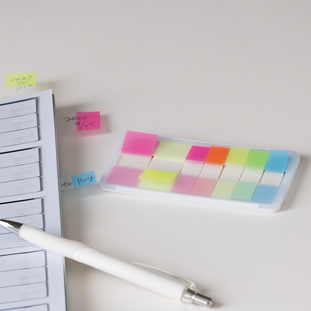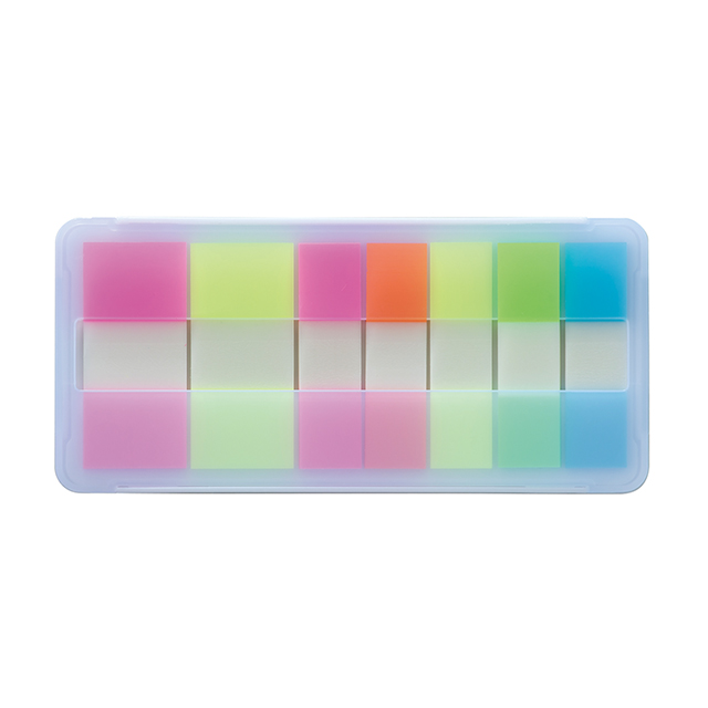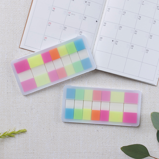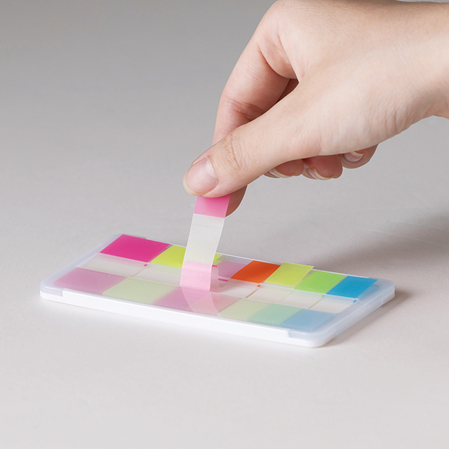 プラケース入りで、筆箱などに入れても付箋が折れないのが嬉しいポイント。