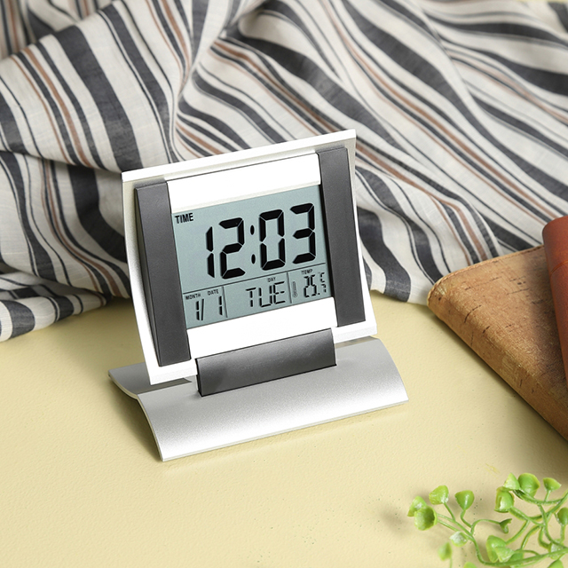 おおきな液晶ディスプレイが特徴のデジタル時計。