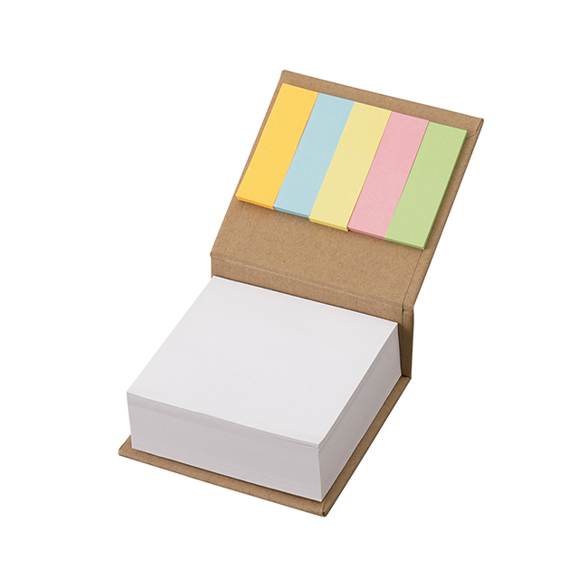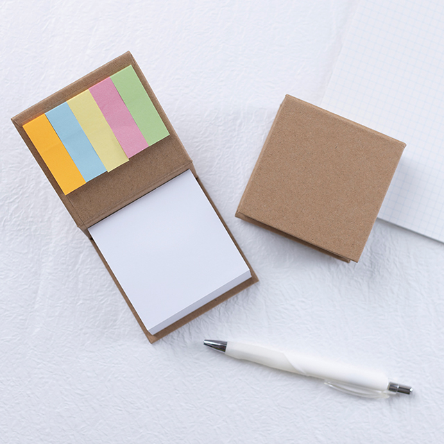 付箋付きブロックメモは、表紙に再生クラフトを使用した付箋・メモセットです。