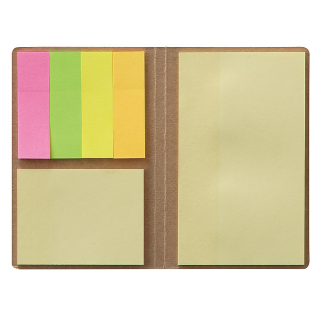 NEWブック型付箋メモは、再生クラフトを使用した大きな表紙が特徴の付箋メモセットです。