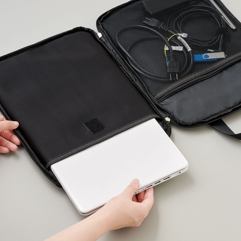 パソコンケース、タブレットケースとして、通勤・通学はもちろん、出張にも便利な頼れるアイテムです。
