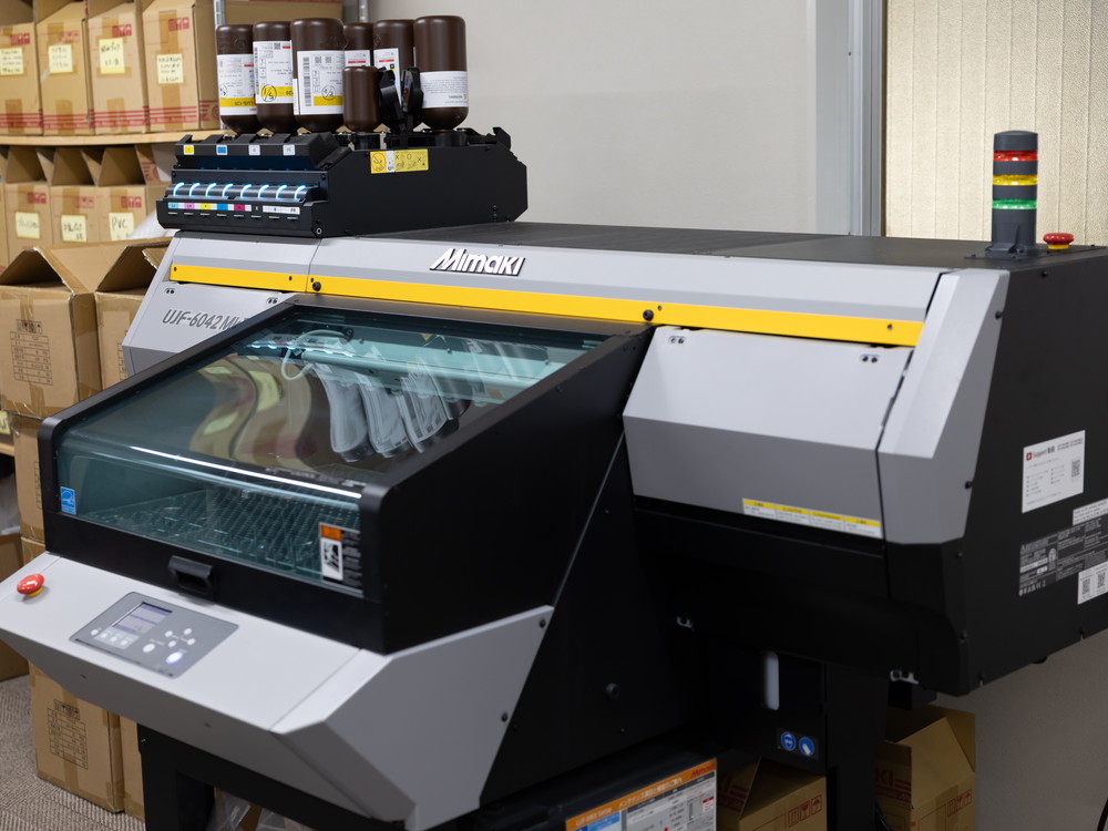 木材、プラスチックなどの多様な素材に対応し、平面はもとより 凸面や凹面、多少のアール状のものなどに印刷が可能です。細かなデザインや、文字もすっきり印刷できます。