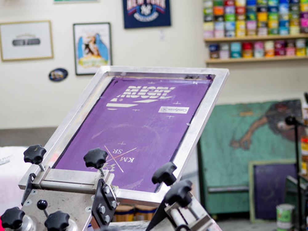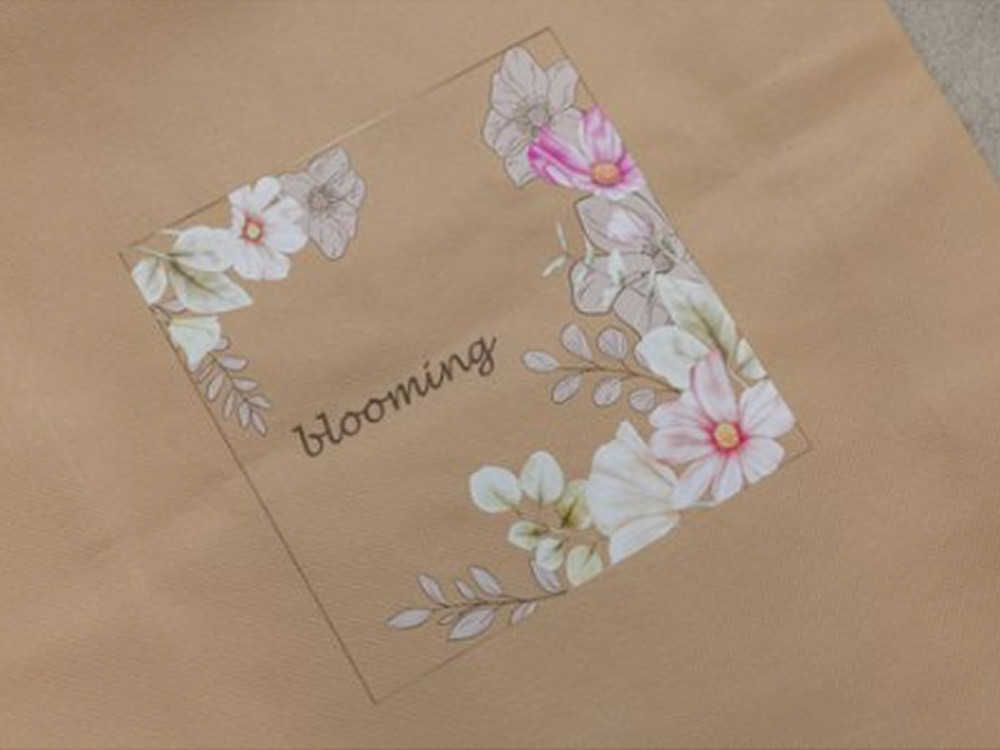 特殊なフィルムにインクを印刷し、それをTシャツなどの布地に熱プレスで転写するプリント方式です。制版が不要なので1枚から制作でき、写真やグラデーションも鮮やかに再現できます。
